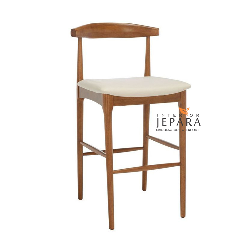Tingkatkan tampilan interior dapur, cafe, atau bar Anda dengan Kursi Bar Kayu Jati Minimalis Modern dari Interior Jepara. Kursi ini memiliki desain elegan dengan sandaran melengkung ergonomis yang memberikan kenyamanan ekstra saat duduk. Terbuat dari kayu jati solid pilihan, kursi ini kokoh, tahan lama, dan memiliki tampilan alami yang menawan. Dudukan dilapisi busa empuk berbalut kain halus untuk kenyamanan maksimal, menjadikannya pilihan ideal untuk area makan, mini bar, atau restoran bergaya modern tropis dan skandinavia.